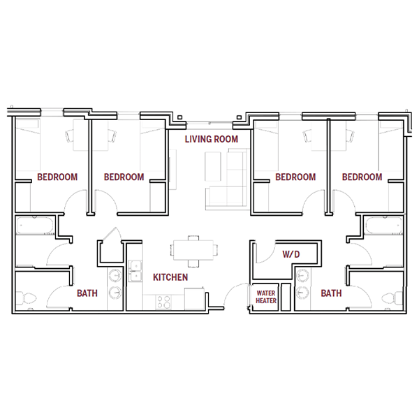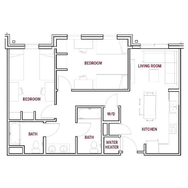 Our private bedrooms, featuring ample storage and contemporary fixtures, provide a serene oasis for ultimate relaxation and focus. All units have private bedrooms, open-concept living areas, and modern kitchens to provide a sophisticated student living environment.